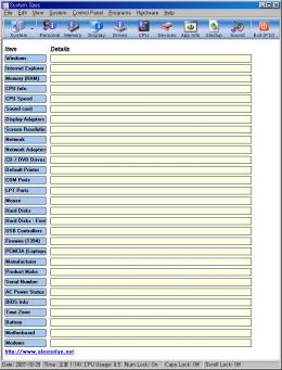 아래의 SystemSpec 은 전체 하드웨어 사양을 알려준다 위 그림은 보여주기 전이고 상단 아이콘중에 System 이라는 아이콘을 클릭하면 사양이 주우욱 나열된다.
